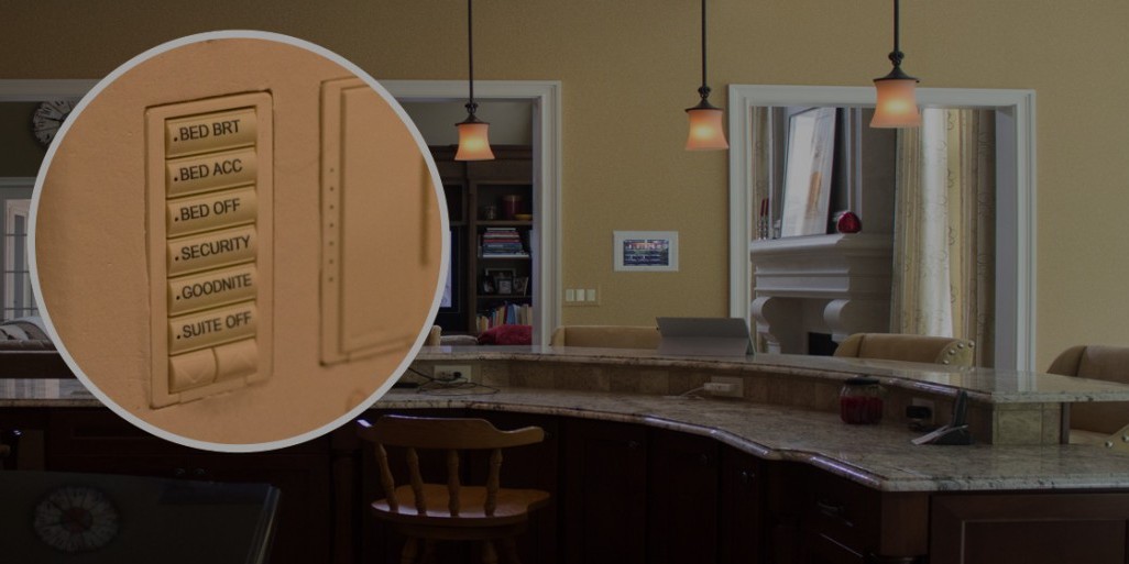 Scenes allow you to set the perfect light levels in a room with one button press. When a particular room, such as a dining room, has several light fixtures controlled by several dimmers it can be tedious to set the perfect light levels each time you enter the space. What often happens is that you turn on the main light at full brightness and you forget about the sconce lights, the in-cabinet lights, and the artwork lighting.